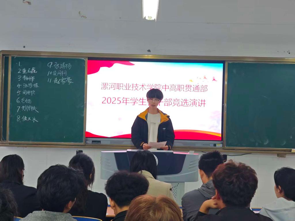 9月19日,中高职贯通部2025年学生会换届选举大会在3号教学楼303教室举行。中高职贯通部党总支副书记王珂琦、各班级辅导员及学生代表参会,共同见证学生组织的新老交替。